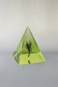 Voorbeeld: Grashalm ingegoten in plexi – gravure op zijkant